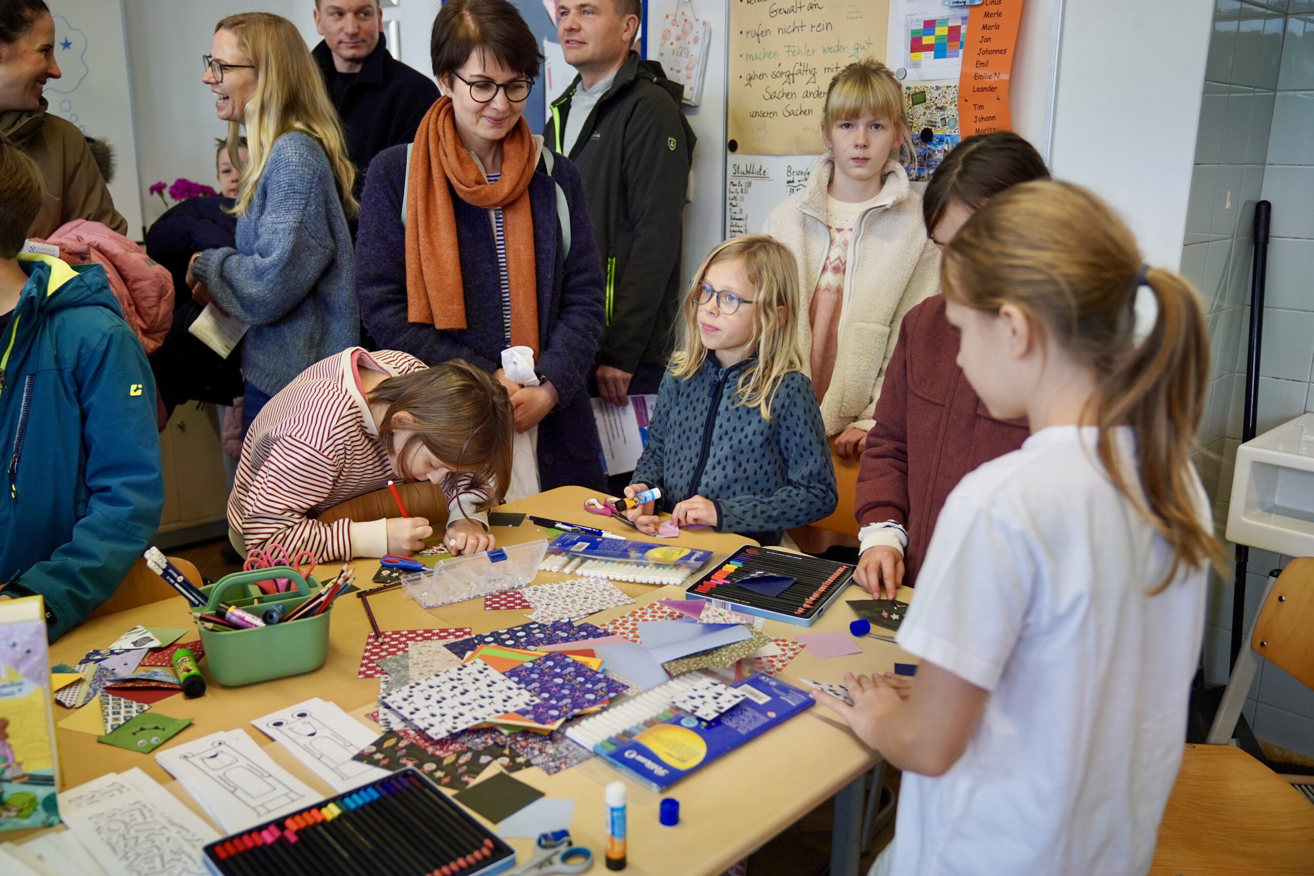 Nach einer persönlichen Begrüßung in der Pausenhalle konnten die Familien die Schule auf eigene Faust erkunden. Ein besonderes Highlight war erneut die beliebte Cani-Rallye, die die Kinder quer durch das Gebäude führte. Wer alle versteckten Buchstaben gefunden und den Lösungssatz „Lernen im Caniversum“ entschlüsselt hatte, durfte sich am Ende über einen kleinen Preis freuen.