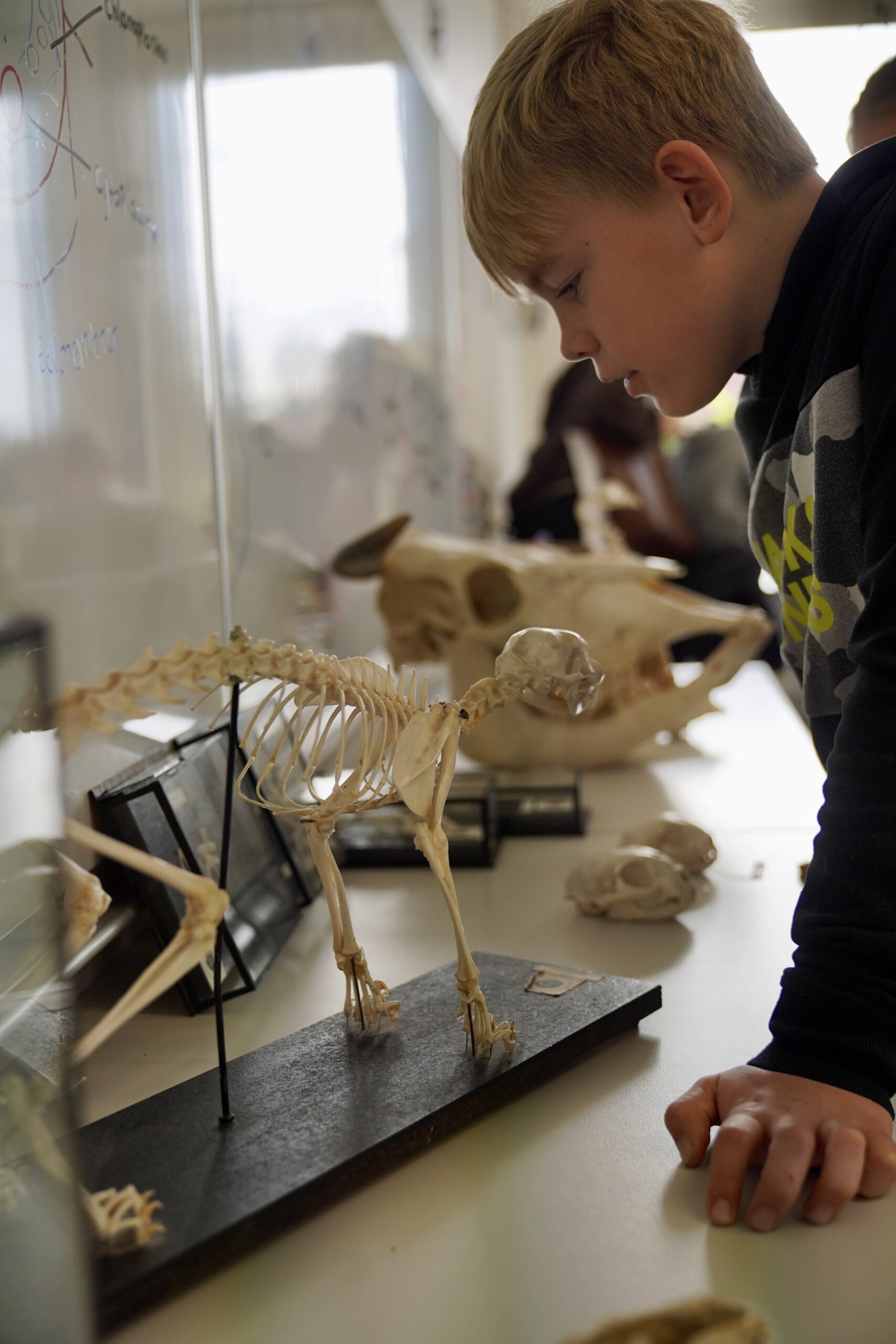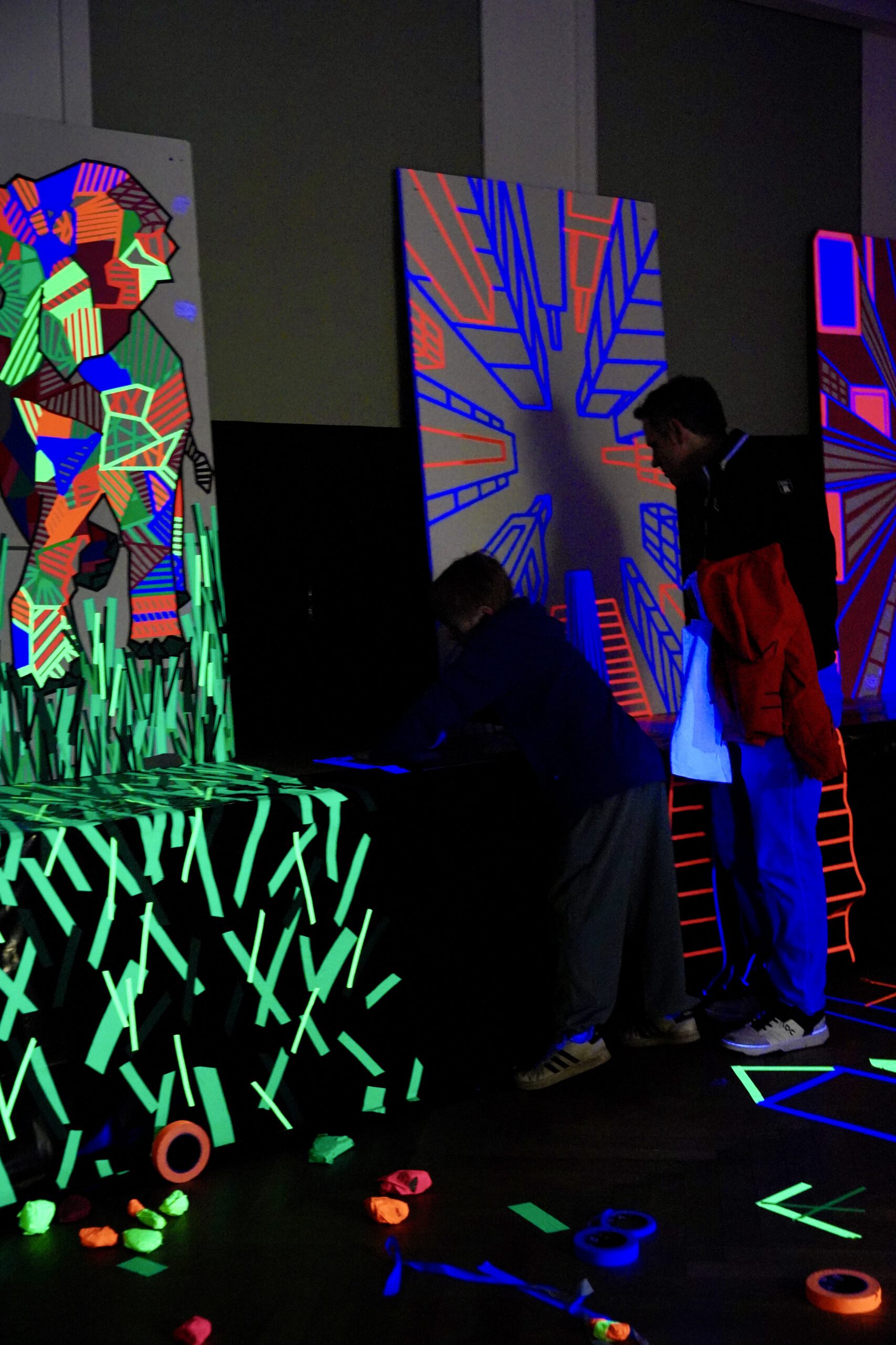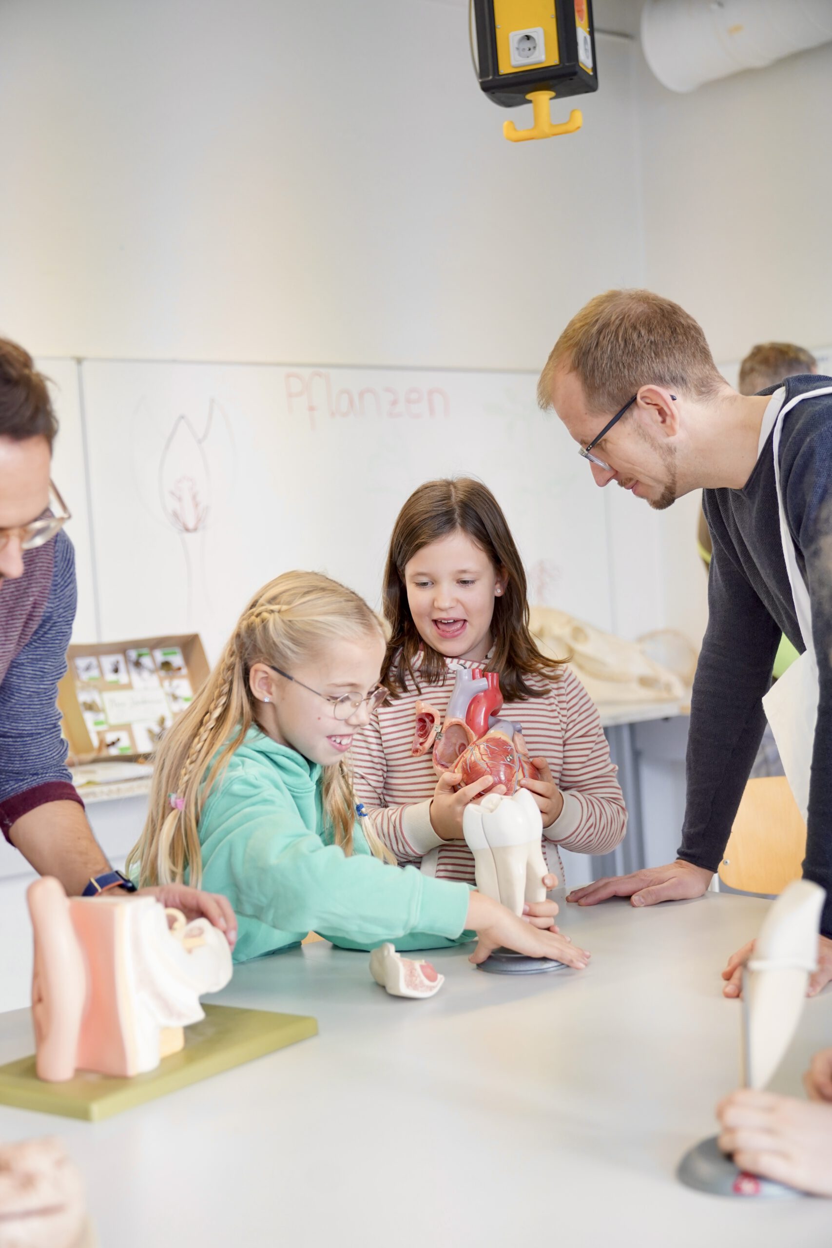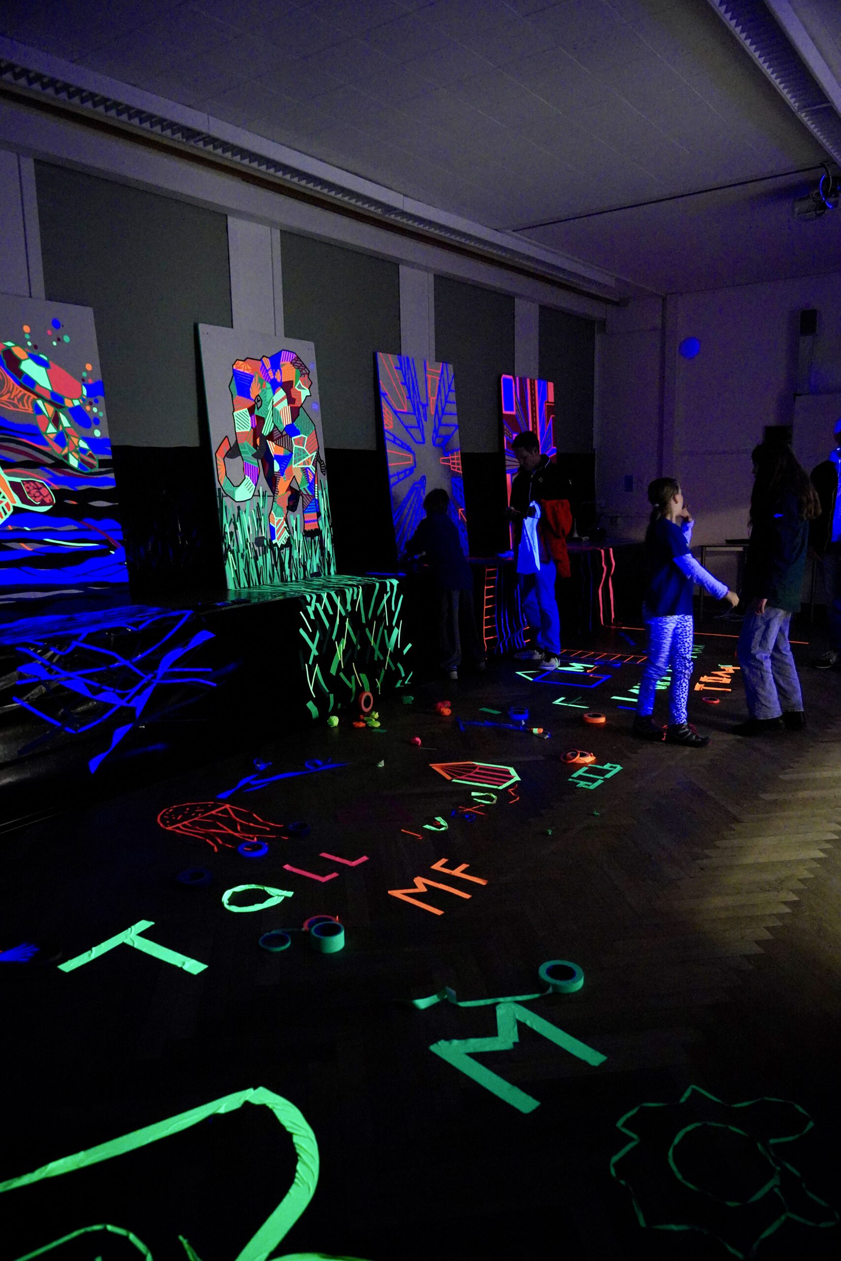 Schon beim Rundgang wurde deutlich: Für Staunen war reichlich gesorgt. Von 3D-gedruckten Hunden bis hin zu beeindruckenden Schwarzlicht-Installationen mit Tape Art präsentierten Schülerinnen und Schüler vielseitige Projekte aus dem Unterricht und den Arbeitsgemeinschaften. In der Biologie konnten Kinder außerdem auf eine mikroskopische Entdeckungsreise gehen und sowohl lebende als auch nicht lebende Objekte aus nächster Nähe erforschen.
