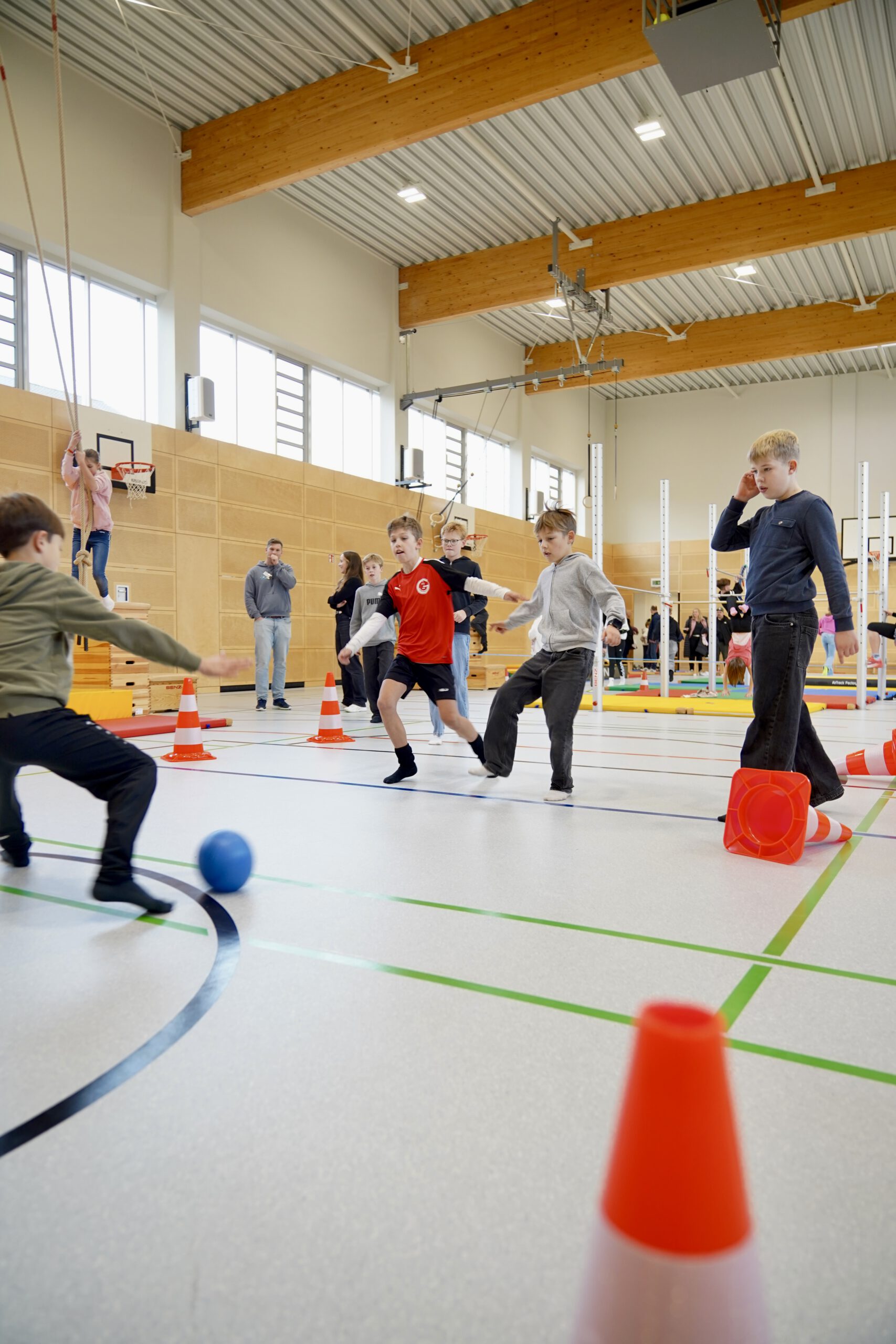 Auch in der Sporthalle kamen die jüngsten Gäste beim vielfältigen Bewegungsangebot voll auf ihre Kosten. Das Fach Wirtschaft-Politik stellte sich spielerisch vor: Ein interaktives Kahoot-Quiz animierte zum Mitraten und sorgte für viel Begeisterung.