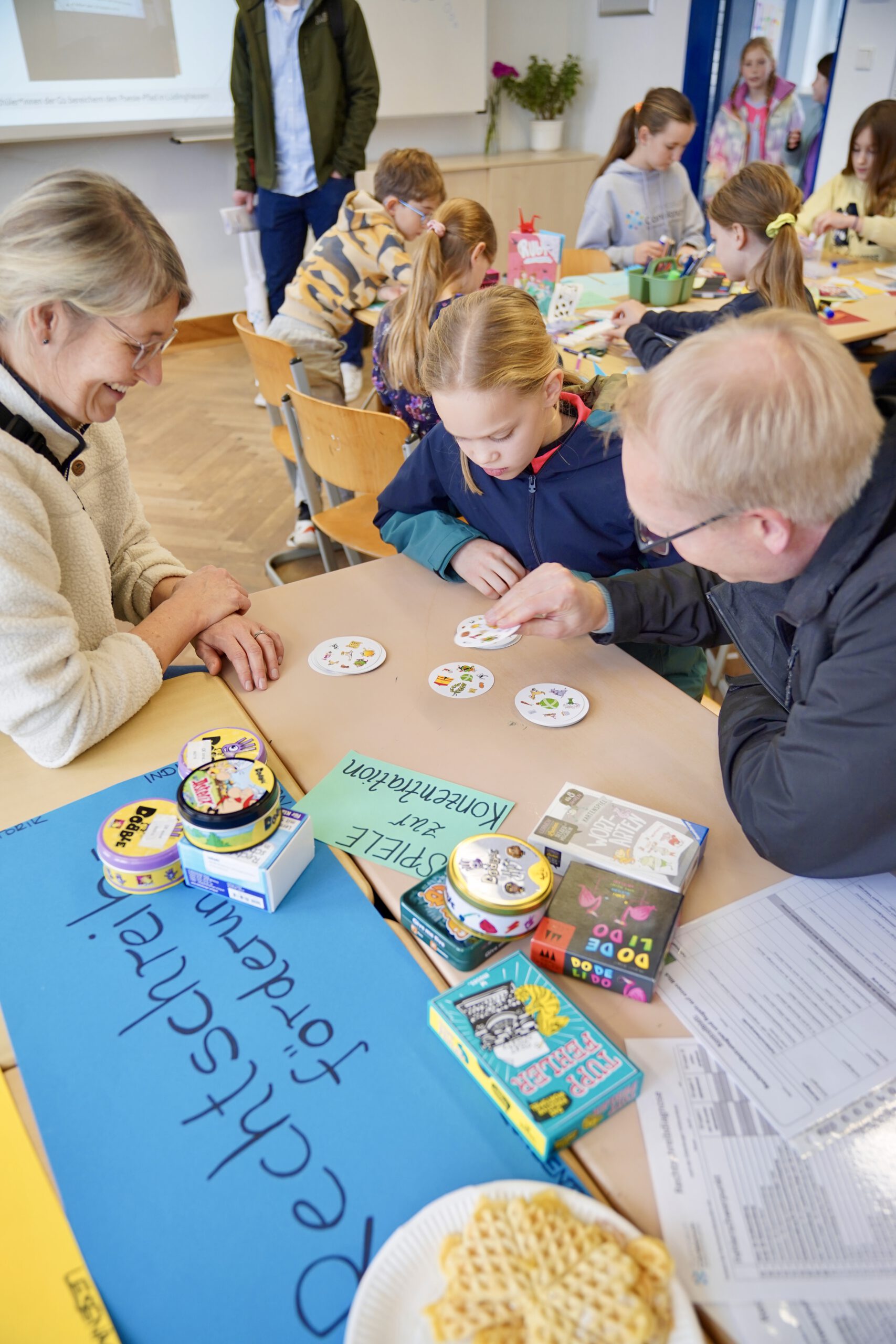 Für das leibliche Wohl war ebenfalls bestens gesorgt: Die Tansania-AG verkaufte Fairtrade-Waffeln, um weitere Spenden für das Projekt „KidzCare“ zu sammeln, und in der Mensa duftete es verführerisch nach frischem Kaffee und Kuchen.